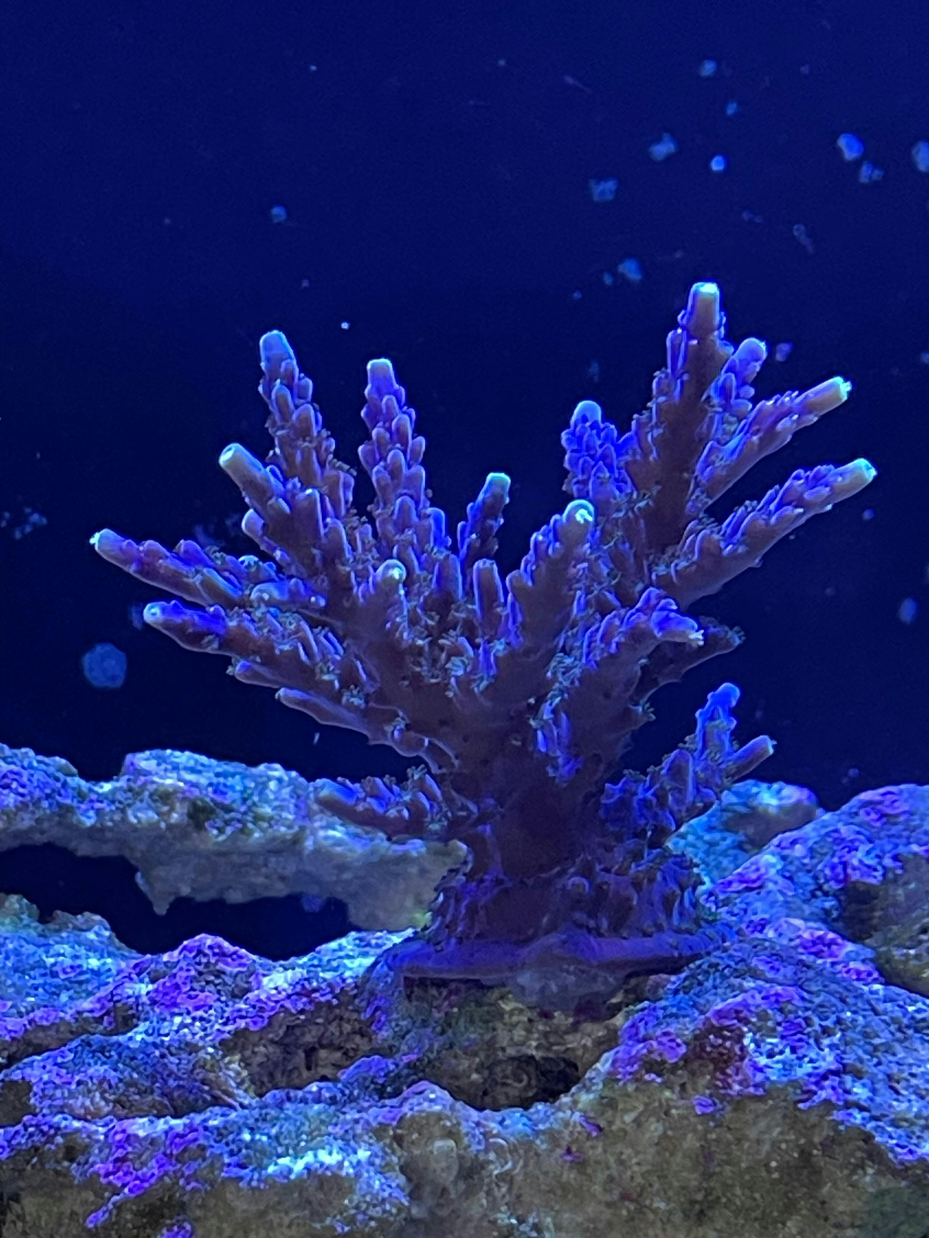 Other notes: Changes in light and parameters make this coral brown out and lose purple skeleton.